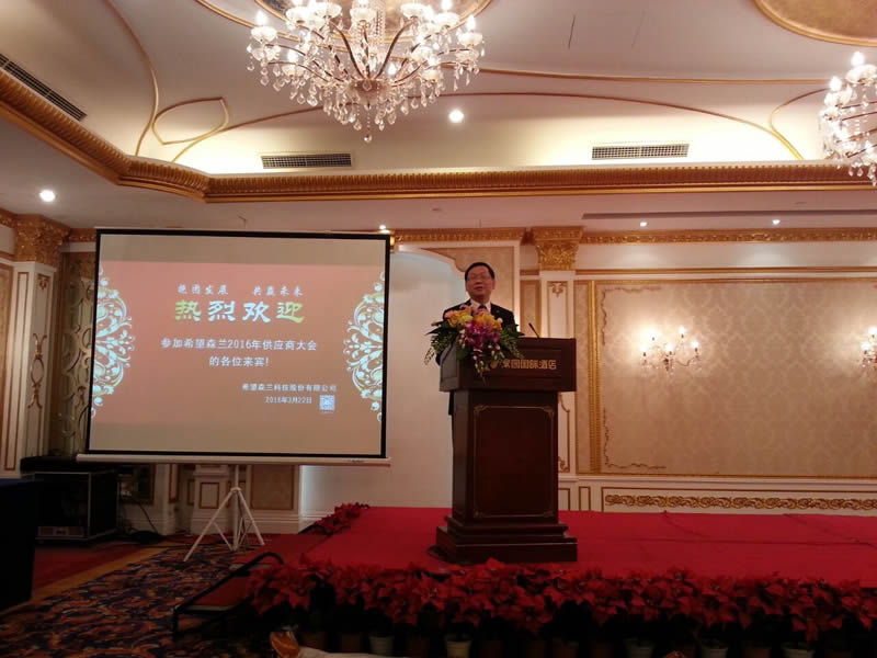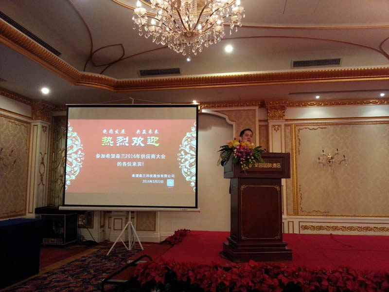 3月22日成都市三極科技有限公司出席了大陸希望集團(tuán)森蘭科技公司的供應(yīng)商大會——“抱團(tuán)發(fā)展 共贏未來”,此次會議在家園國際酒店隆重舉行。本次會議由希望森蘭副總經(jīng)理于正月主持。應(yīng)邀出席的有成都市鈑金協(xié)會秘書長胡慶蘇、大陸希望集團(tuán)采購部、監(jiān)察部相關(guān)領(lǐng)導(dǎo)和嘉賓以及來自全國各地的100多家供應(yīng)商代表。